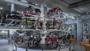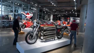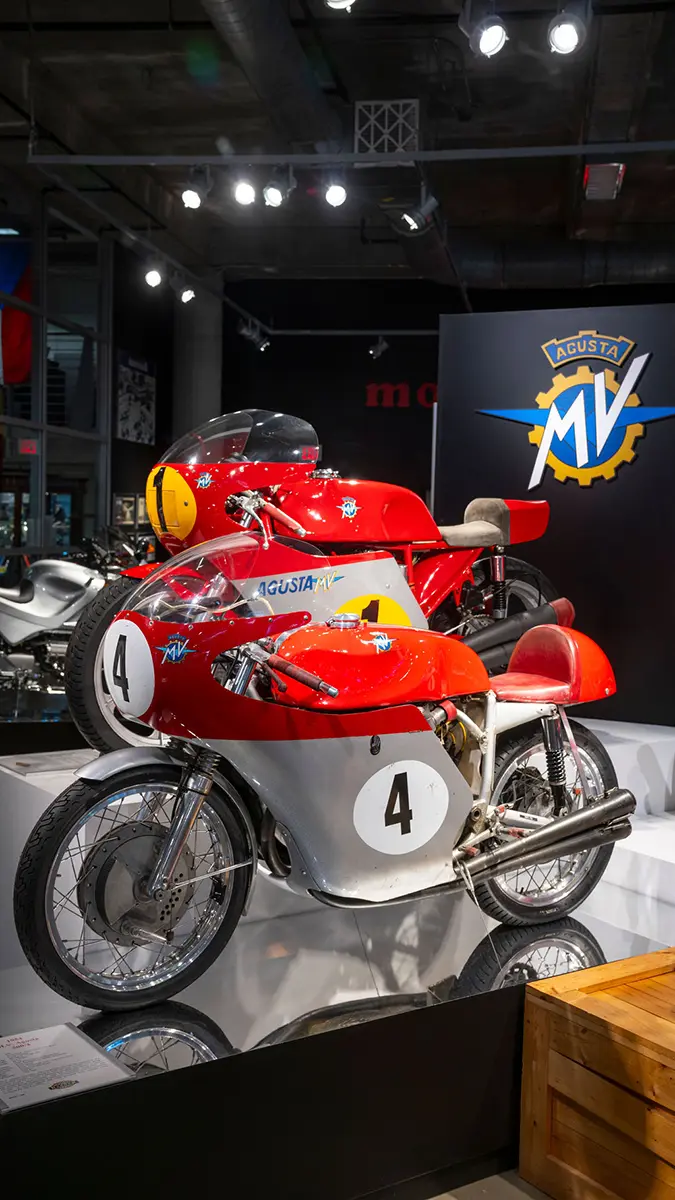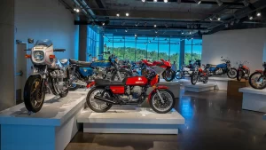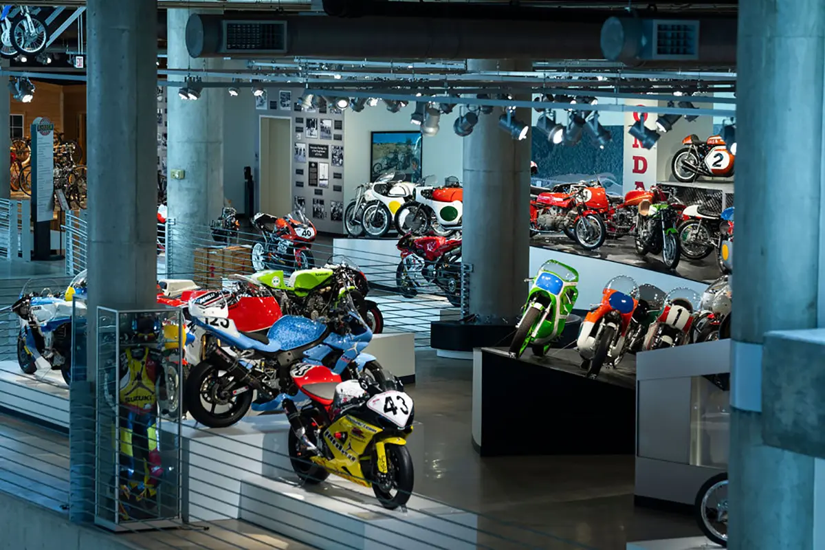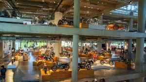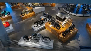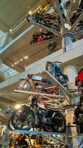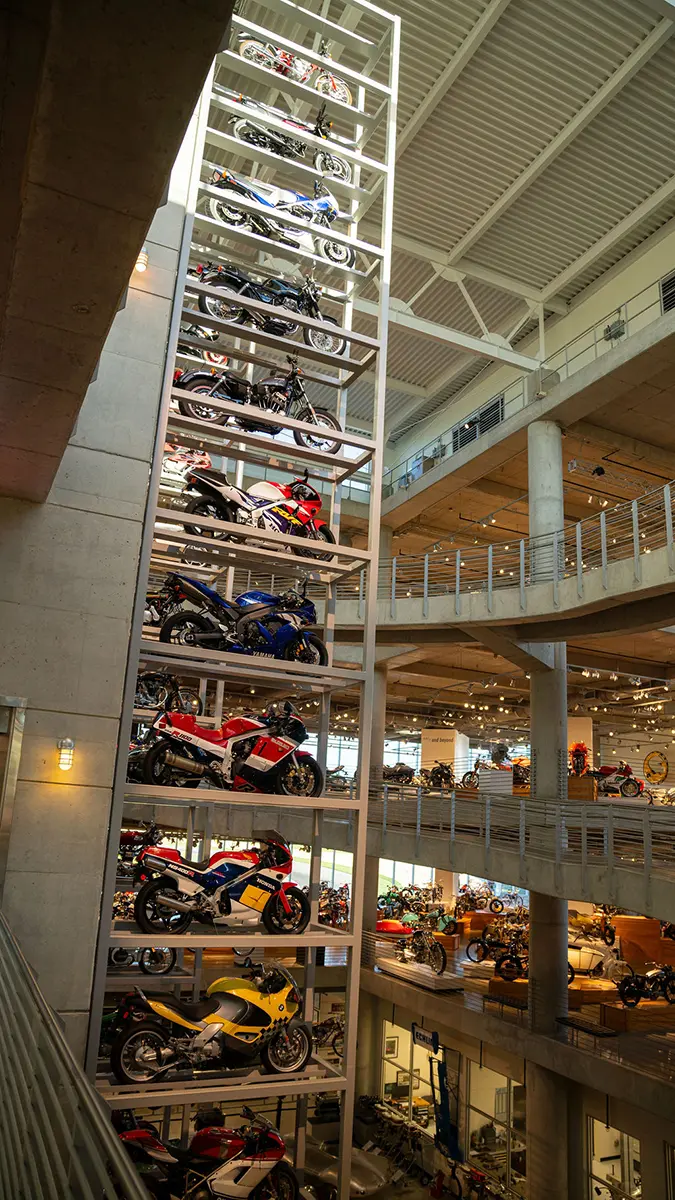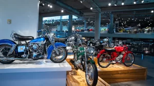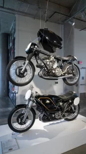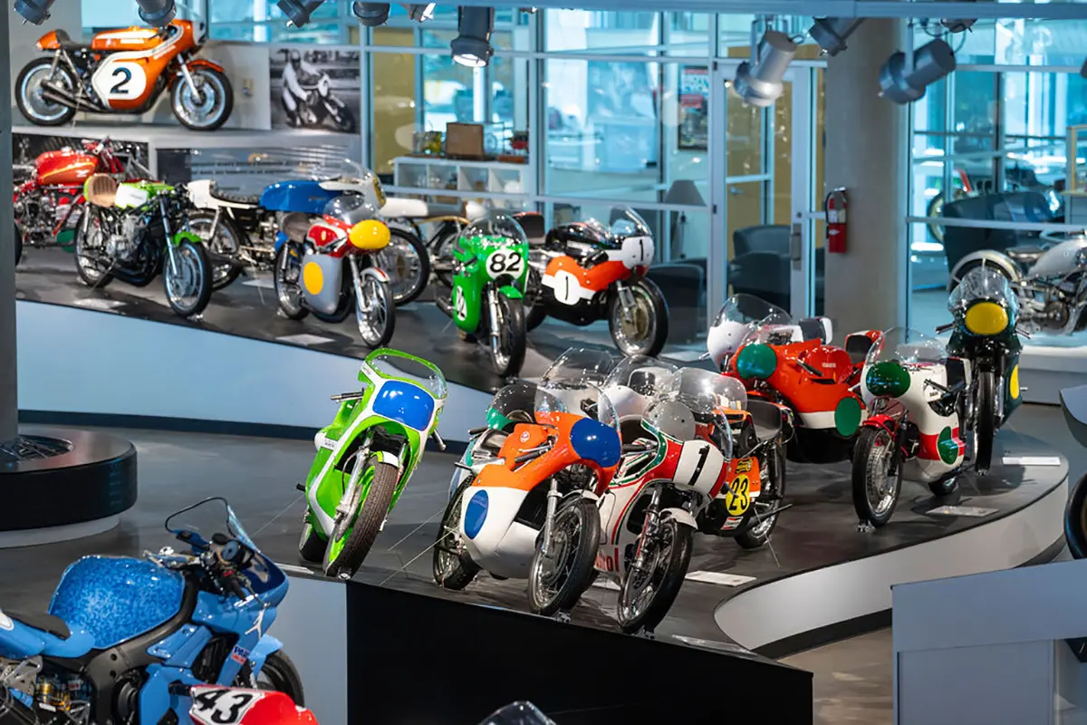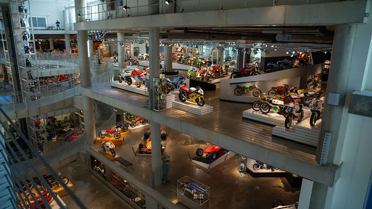 If racing is not your thing, there are floors and floors of amazing street bikes to explore. Over two hundred manufacturers from 22 countries sit basking in the sun that streams through the floor-to-ceiling glass walls. Harley-Davidson, Indian, Triumph, or Ducati, think of a name, and you will find multiple examples of the best machines that each company has ever built. The amazing part is that all these bikes are not simply perfect-looking examples. Each and every one is mechanically complete and ready to ride.
