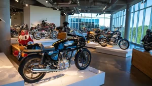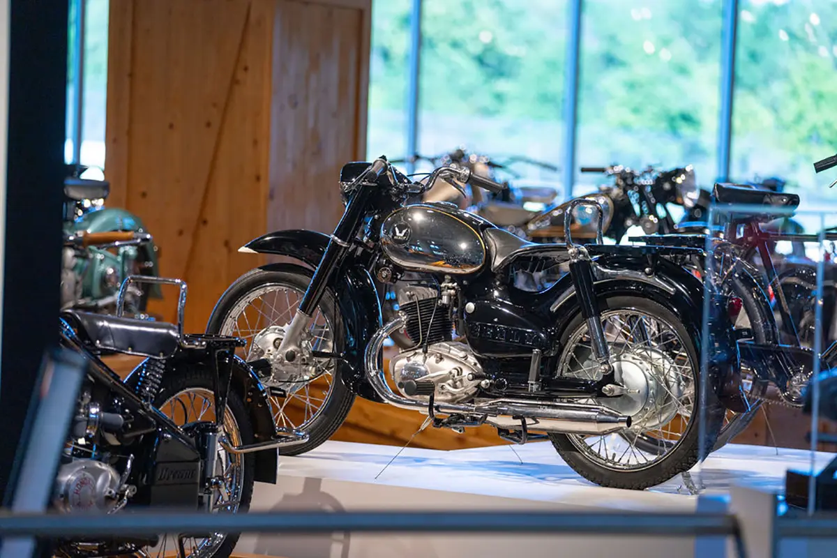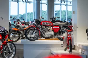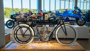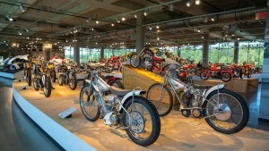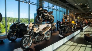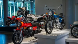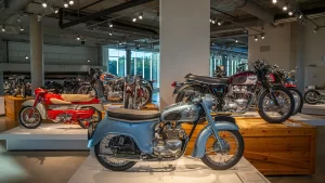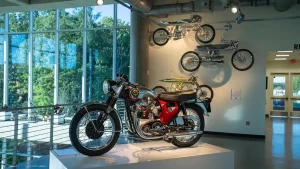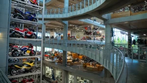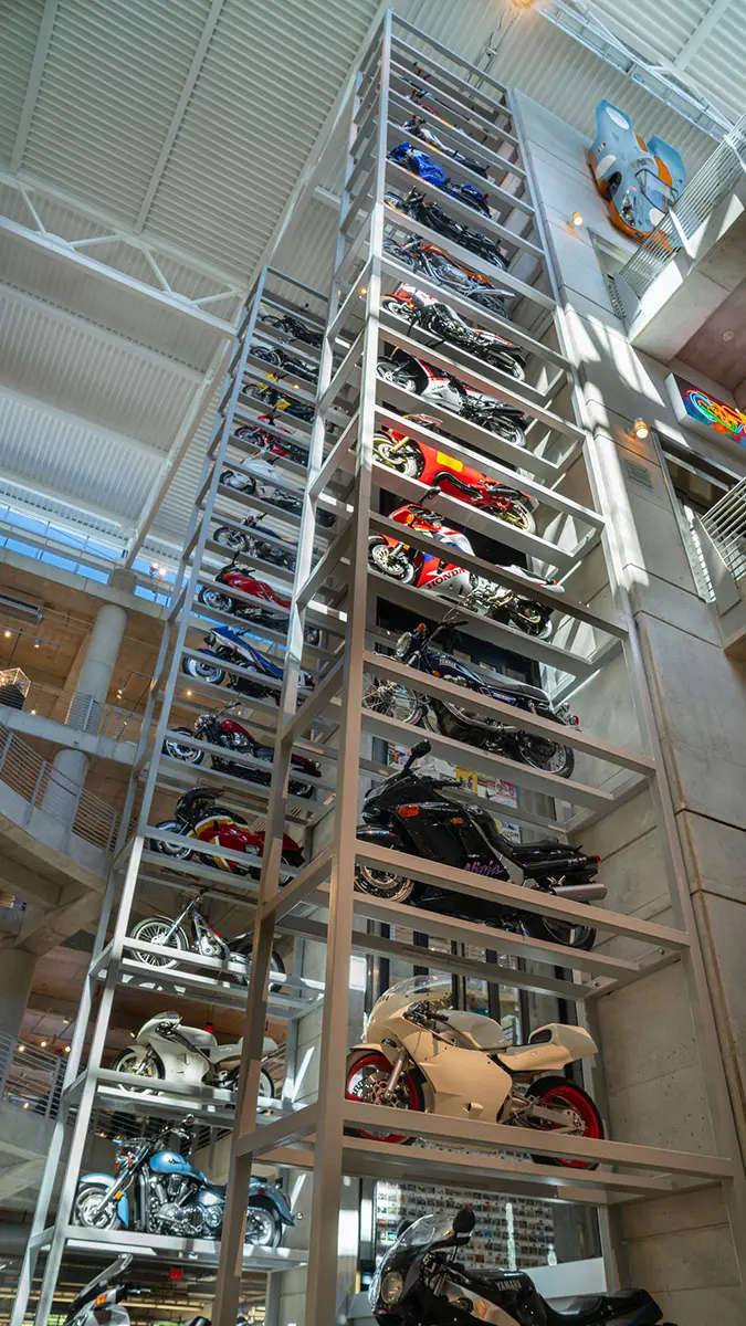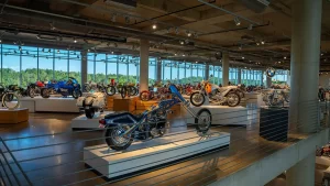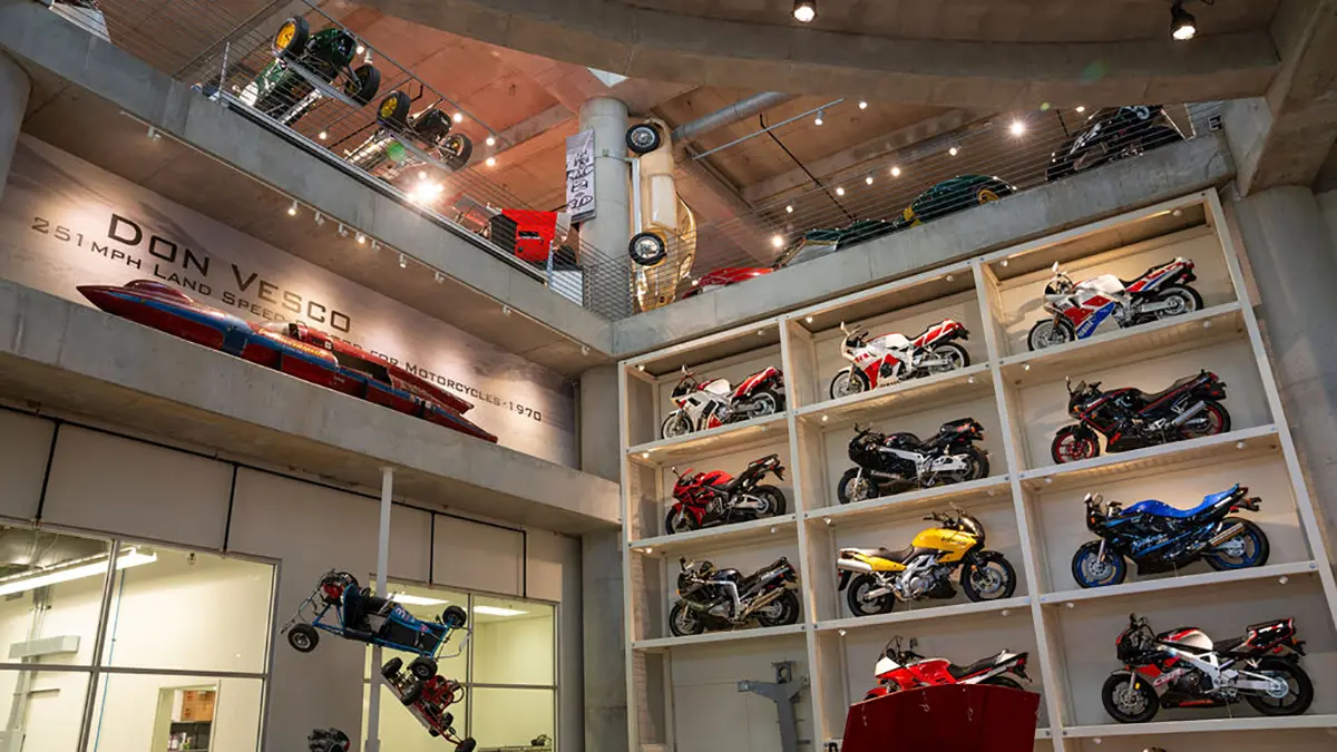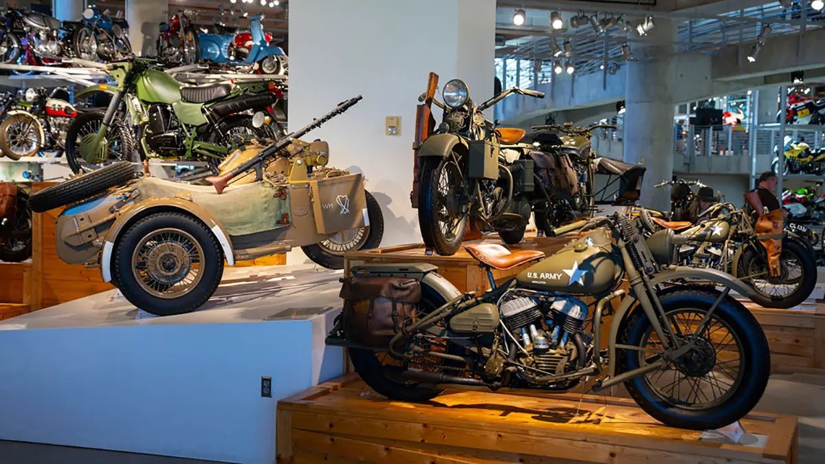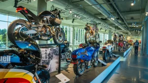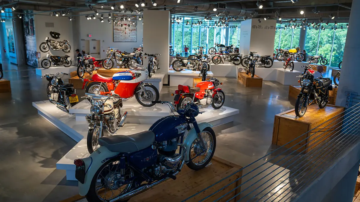 If racing is not your thing, there are floors and floors of amazing street bikes to explore. Over two hundred manufacturers from 22 countries sit basking in the sun that streams through the floor-to-ceiling glass walls. Harley-Davidson, Indian, Triumph, or Ducati, think of a name, and you will find multiple examples of the best machines that each company has ever built. The amazing part is that all these bikes are not simply perfect-looking examples. Each and every one is mechanically complete and ready to ride.