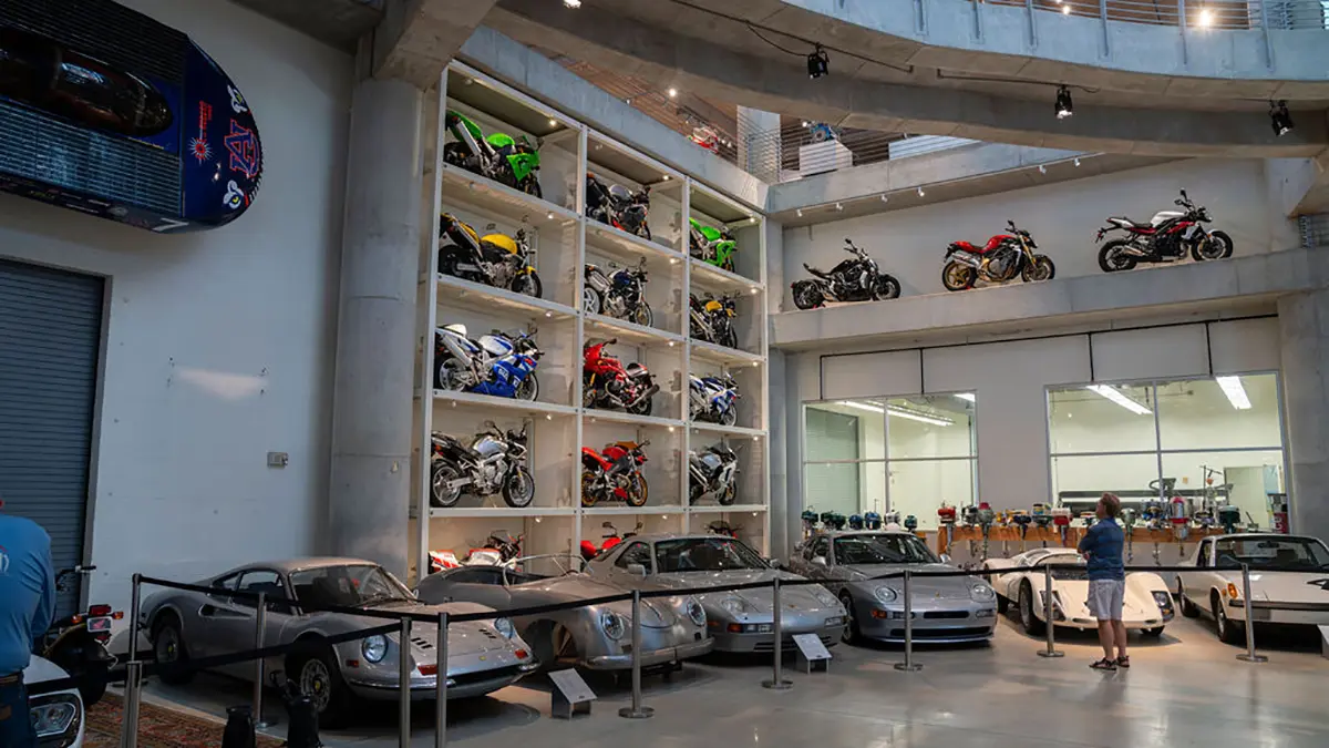 Barber called on design help from racing heroes John Surtees, Dan Gurney, and Carroll Shelby, who would later be honored with exhibits in the museum. The former milk mogul also drew inspiration from his visit to the Guggenheim, and had a team of architects start designing a huge museum building that centered around large circular ramps mimicking how visitors gently descended through the famous New York museum.