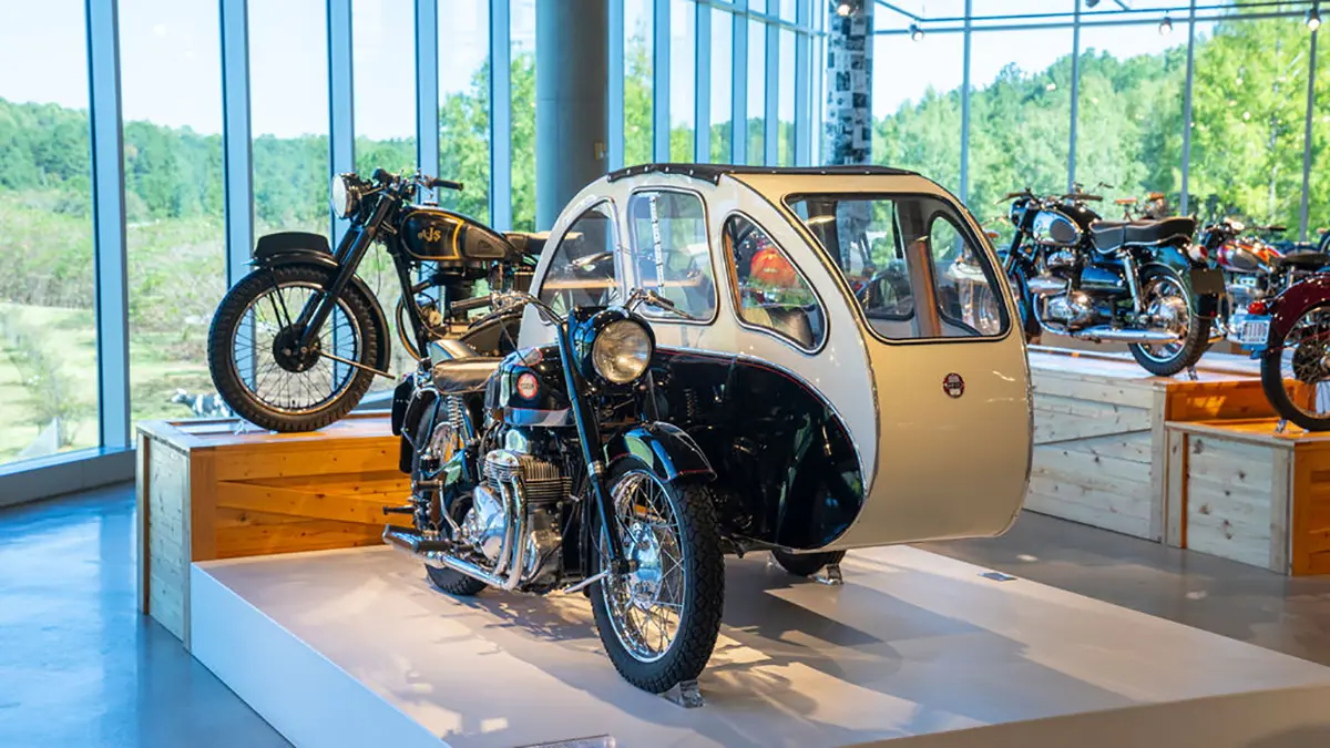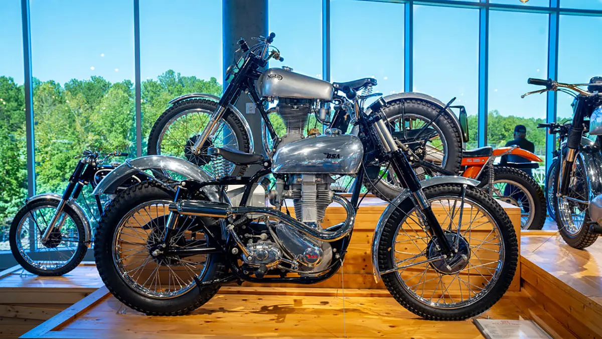 Birmingham, Alabama, does not seem like the place where you would find the eighth Wonder of the World, but that’s where George Barber grew up working with his father at the Barber Pure Milk Company. George was a successful car racer in the sixties and seventies, and he always wanted to build the most extensive car museum his money could afford. Luckily, a friend, George Hooper, convinced George that he should think about creating a modest motorcycle museum instead. In 1988 that museum was launched in an old warehouse on the south side of Birmingham.