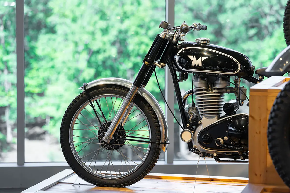 To make all these bikes so perfect takes a dedicated in-house staff of restoration experts who toil away in the basement in full view of the visiting public. Many of the bikes are so old or rare that replacement parts are no longer available. That’s not a big problem for the Museum because in his quest for perfection, George Barber has invested heavily in equipment to produce exquisite replica parts in steel, aluminum or rubber.