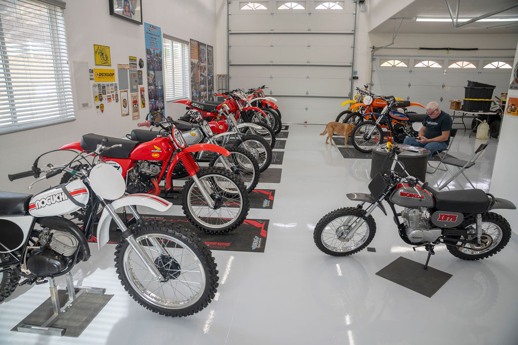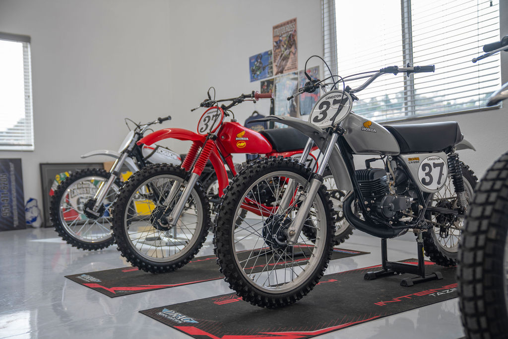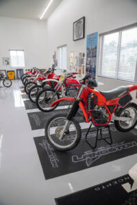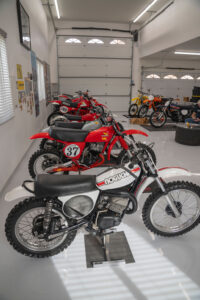 Like so many older racers, Gerald found great satisfaction in restoring some of the old bikes of his early racing days in South Africa. His first restoration was a replica of the 1974 Honda Elsinore 125 that started his passion for motorcycles. He soon moved on to a 1977 Honda Elsinore 125 FMF bike that rekindled memories of his ex-factory Honda. From there, the list gets more diverse with a 1981 490 Mega Maico followed by a couple of 1992 Kawasaki KX500s and a 1981 Honda CR450. There was also a brief Spanish period with a 1974 Ossa Phantom backed up by a 1972 Bultaco Sherpa 200.