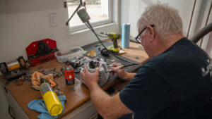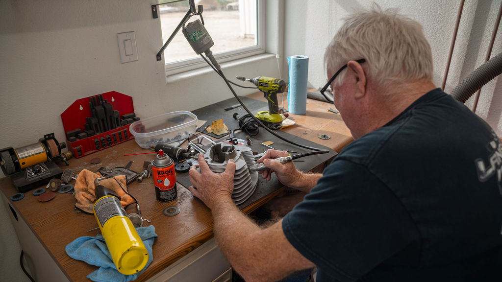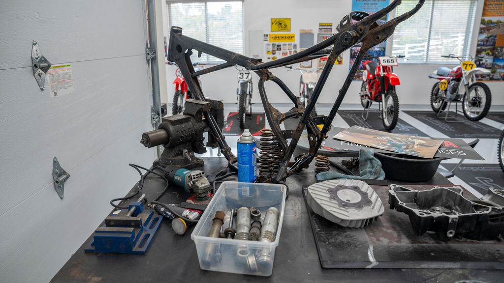 Restoring a Honda Elsinore motocross bike should be a pretty straightforward job when you’ve been trained to maintain 747 passenger jets. Well, it would be straightforward if you were not a perfectionist. When I ask Gerald Langston if, maybe, he’s a little OCD, his wife Amanda nods her head behind his back. Gerald likes to say he’s just meticulous. Whatever the reason, Langston’s motocross restorations are works of art, and, more importantly, he does virtually every bit of the restoration work himself.